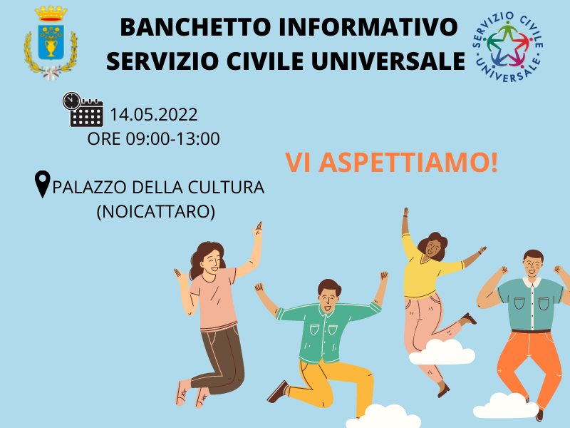 BANCHETTO INFORMATIVO SERVIZIO CIVILE UNIVERSALE giovedì 12 maggio 2022 scarica il documento - formato png - 119 Kb